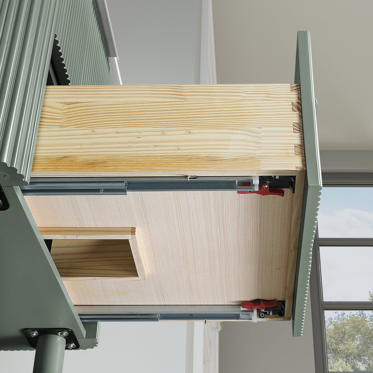 - Features 1 tilt-down and 1 U-shaped Pinewood drawer both with dovetail joinery