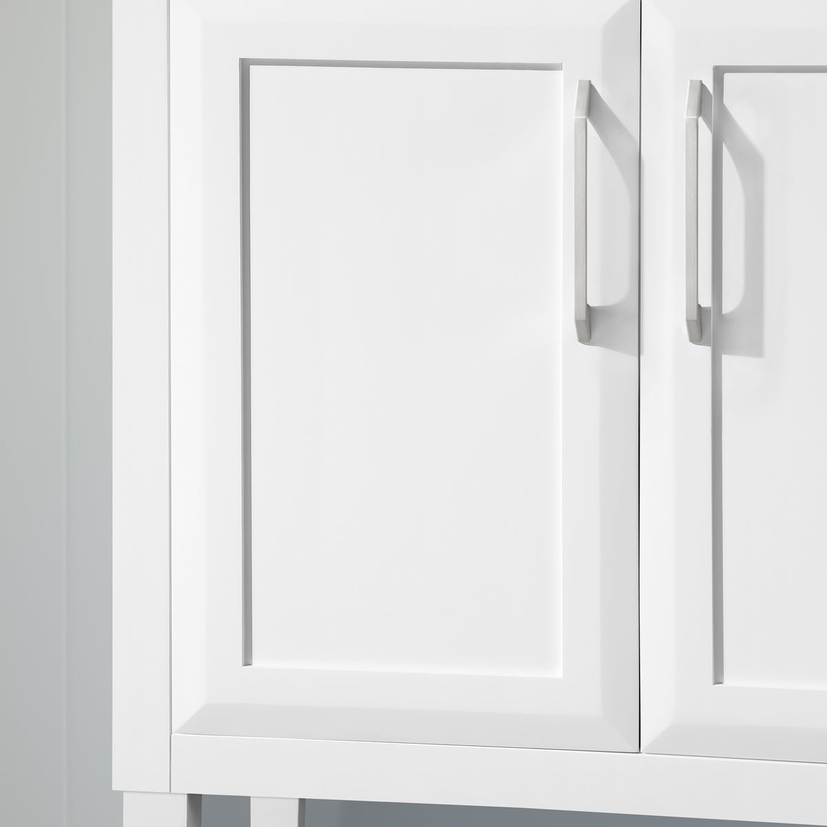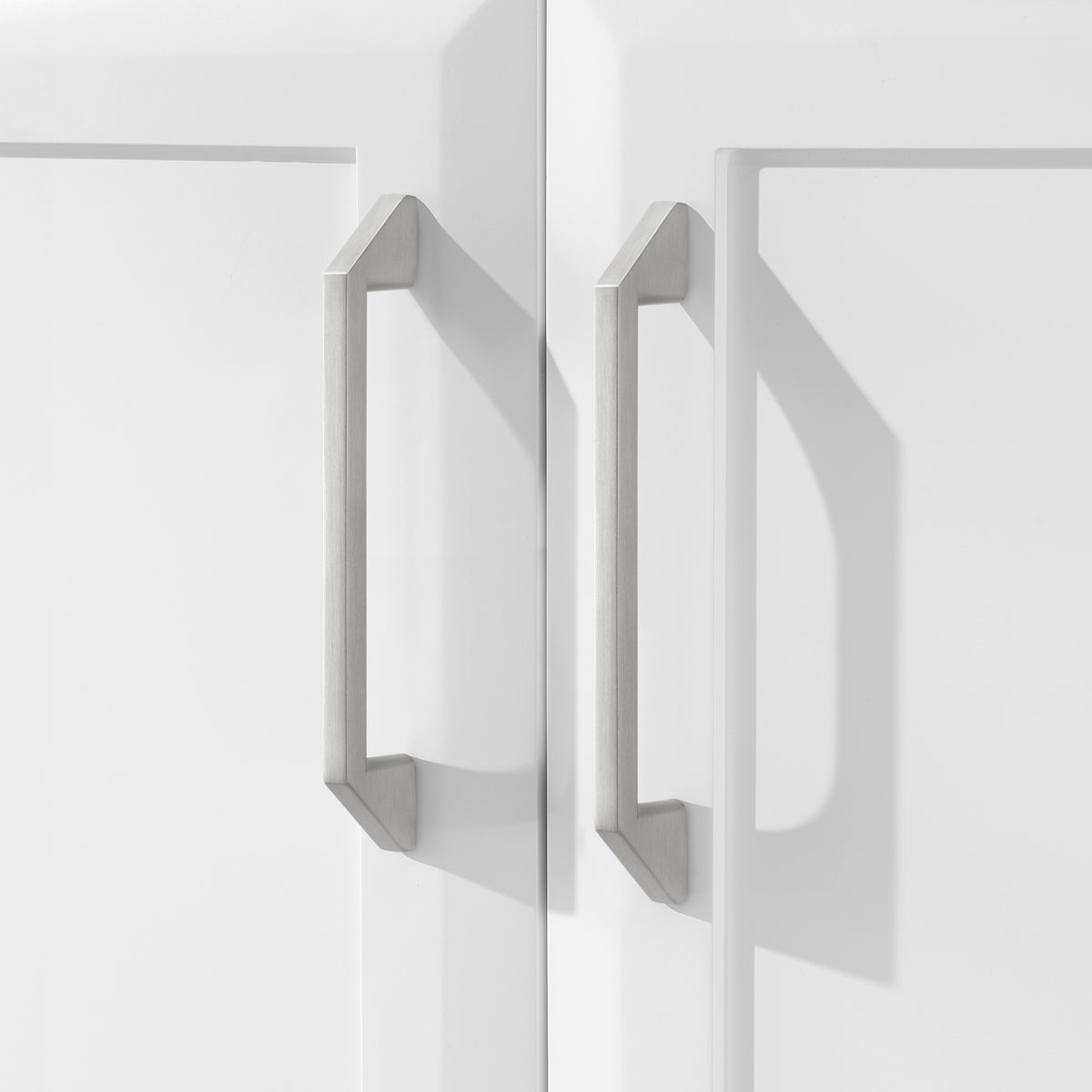 • Brushed nickel handles complement the crisp white finish for a polished appearance.