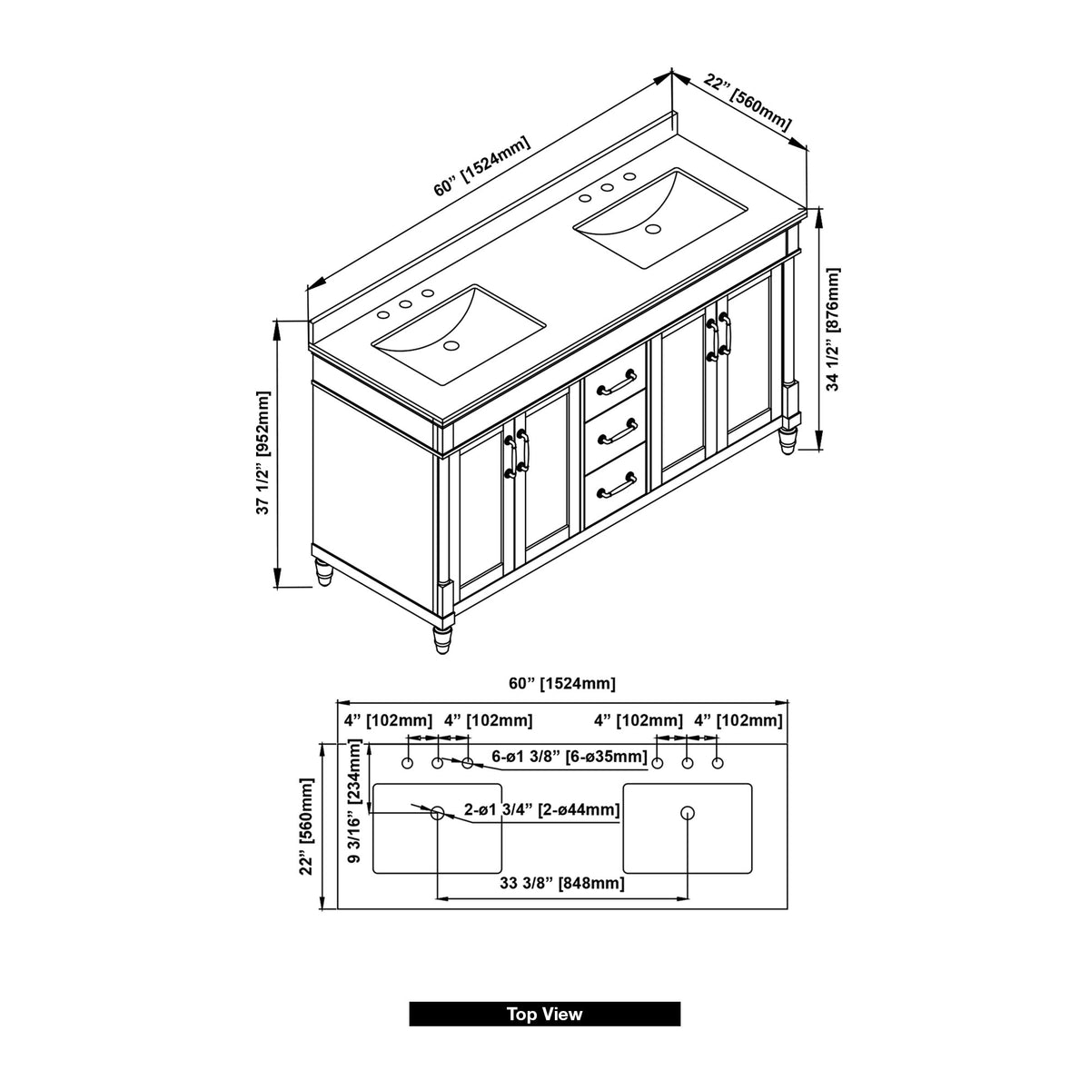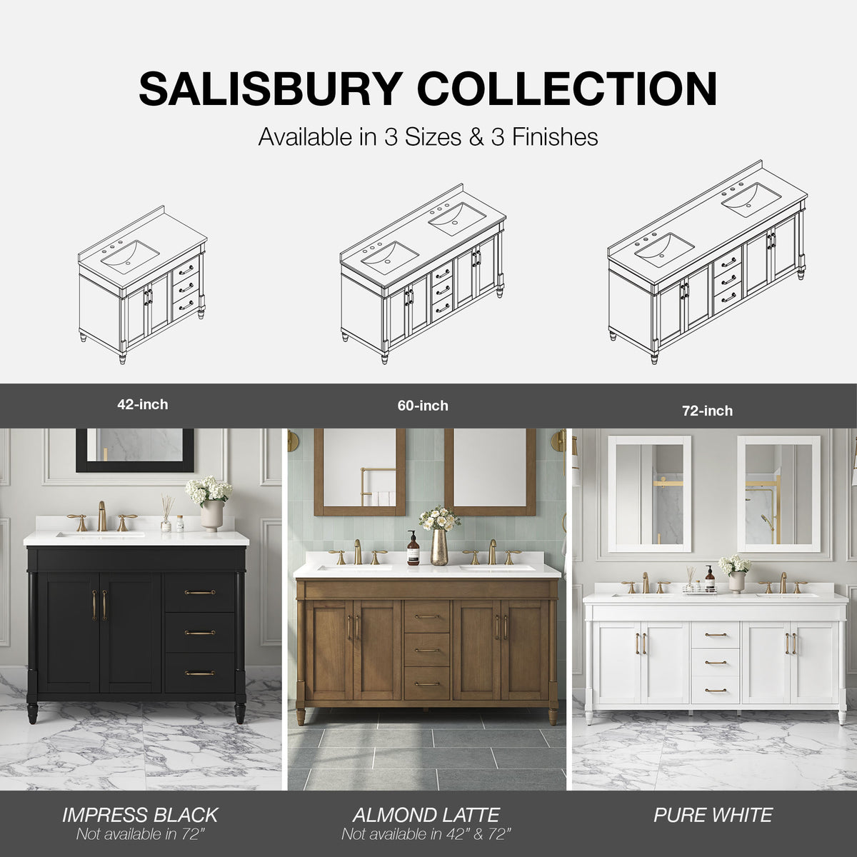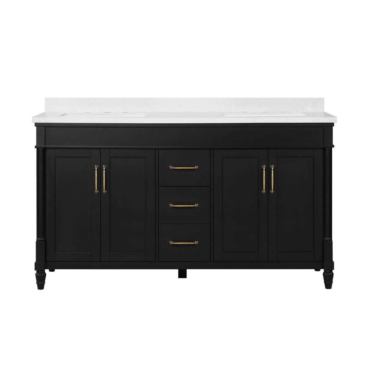 • OVE Decors Salisbury 60 in. White or Impress Black Freestanding Bathroom Vanity with Double Sinks, Engineered Marble Countertop and Backsplash included for a traditional look