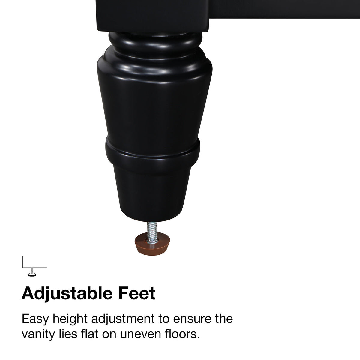 Designed with timeless details like brass hardware, spindle legs and shaker doors, the Salisbury vanity by OVE Decors will give your bathroom a fresh update that will never go out of style. Smartly appointed drawers and cabinets offer plenty of storage for daily essentials while double sinks enable access to multiple users. Whether you choose a Pure White or Impress Black finish, this vanity's shiny engineered marble countertop and undermount sink are ready to wow you with their ease of care, durability and great looks.