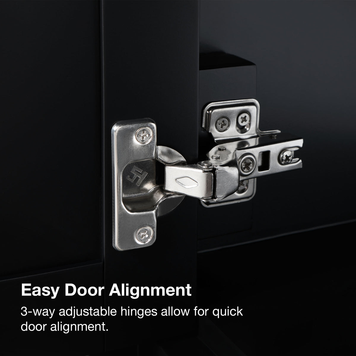 • Concealed hinges with 3-way adjustable 110° opening soft-close capability